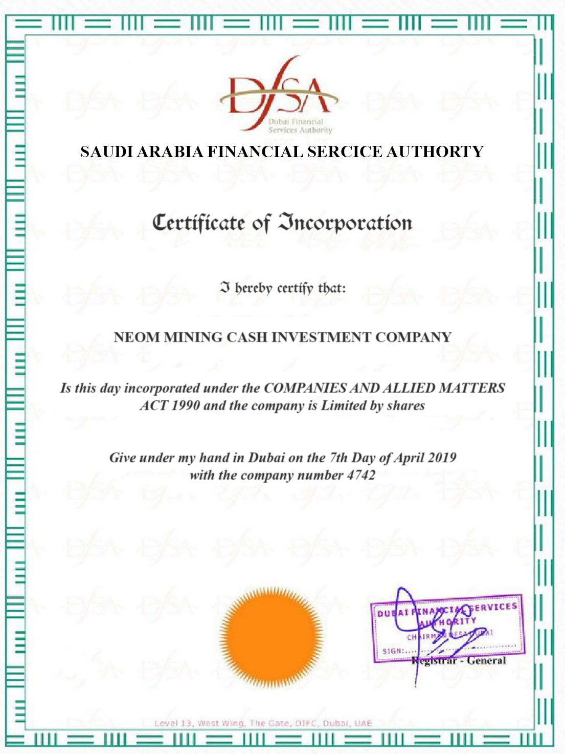 Neom Mining Cash Invest is based in Saudi Arabia , Legally Licensed in April 3rd 2019.